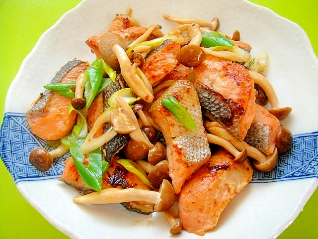 鮭の西京漬けとしめじ長ネギの七味炒め レシピ 作り方 By Mint74 楽天レシピ